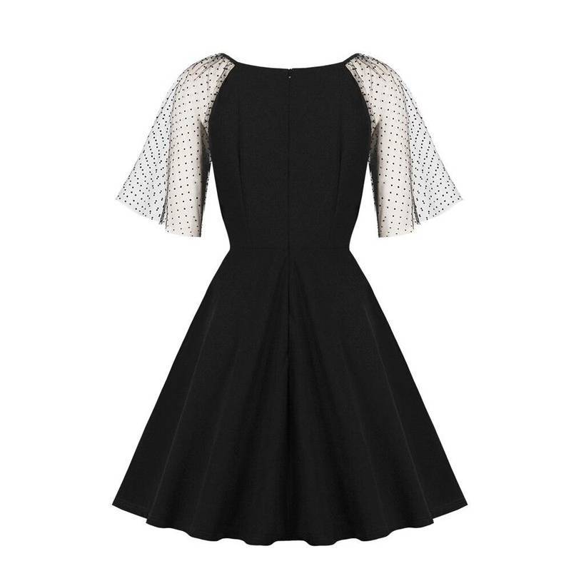 Robe a pois courte noir a femme manche ou robe à pois vintage