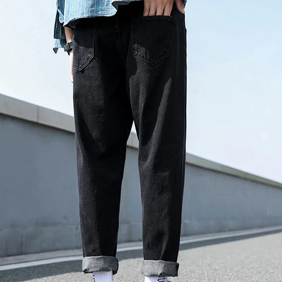 -Jean Large Coupe Droite Bleu ou Noir Streetwear