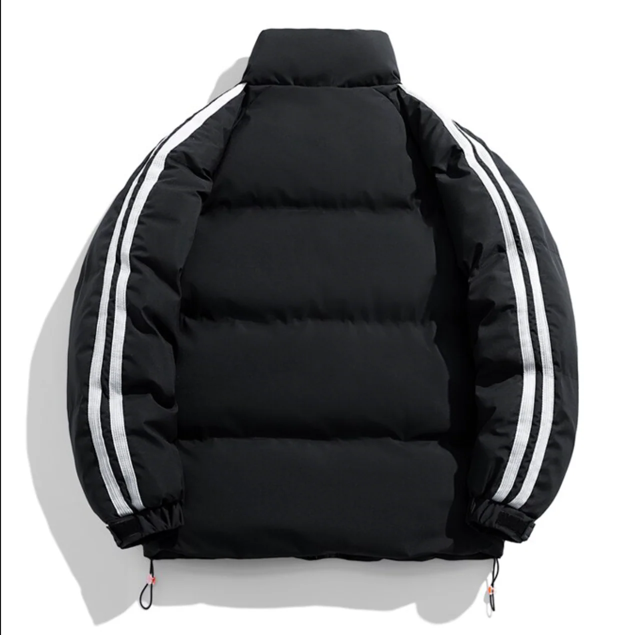 -Parka Doudoune Matelassée Blanche à bandes Grises Streetwear