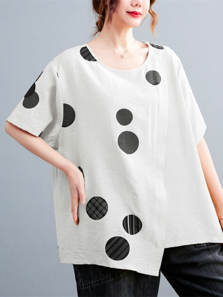 👉N’oubliez pas, la mode est une forme d’expression. Exprimez-vous avec le T-Shirt Coton Imprimé Pois Femmes! 🎊👠