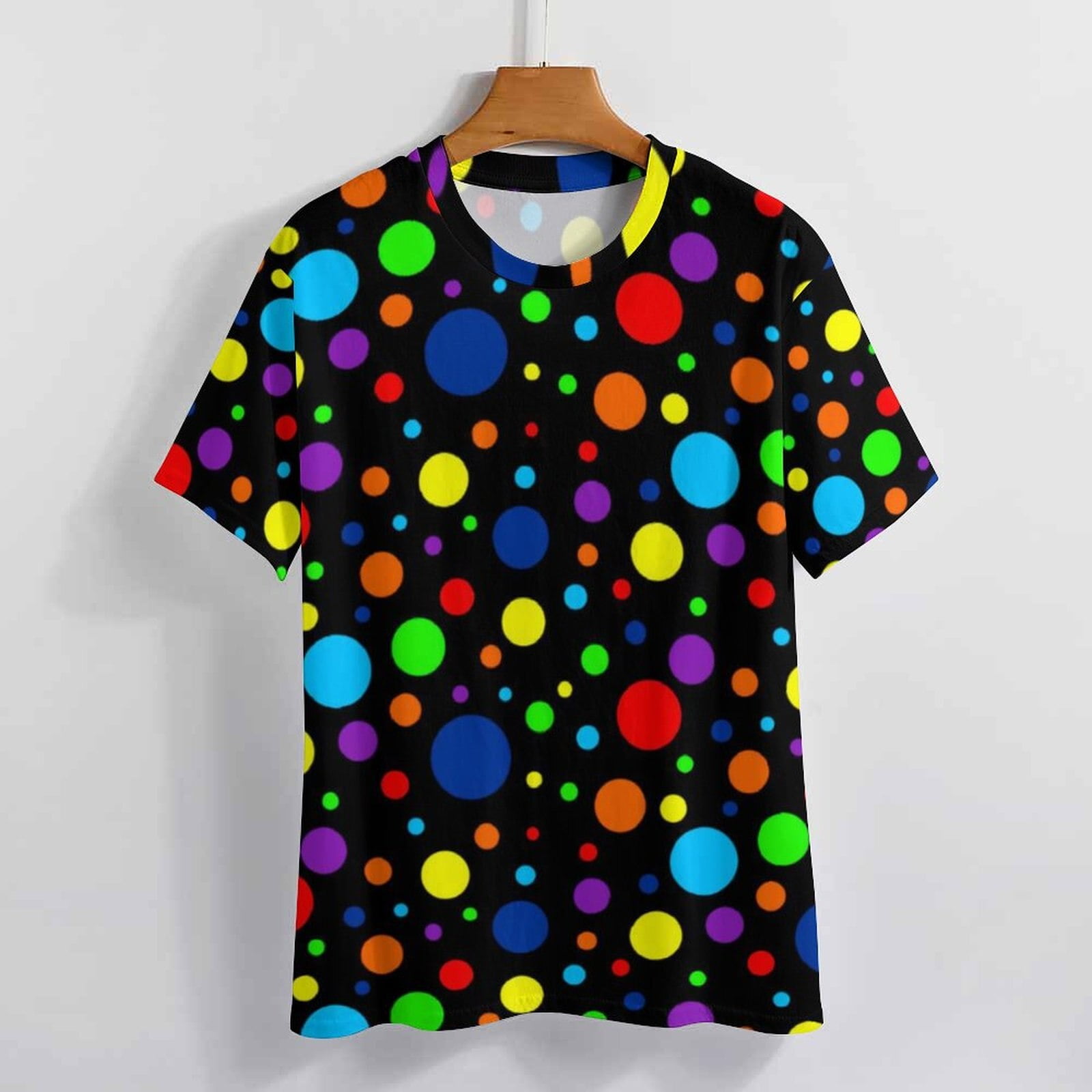 🌈 Préparez-vous à faire tourner les têtes avec ce T-shirt manches courtes, estival et cool, orné de motifs de pois et d’arc-en-ciel. Ce vêtement grande taille n’est pas seulement un choix de mode audacieux, mais aussi une déclaration d’amour pour la saison estivale. 🏖️