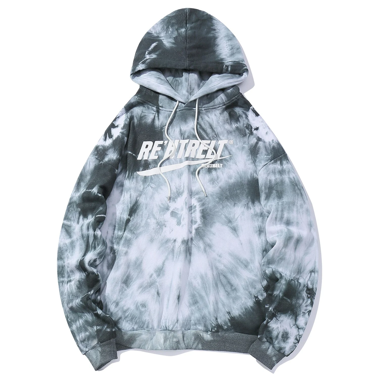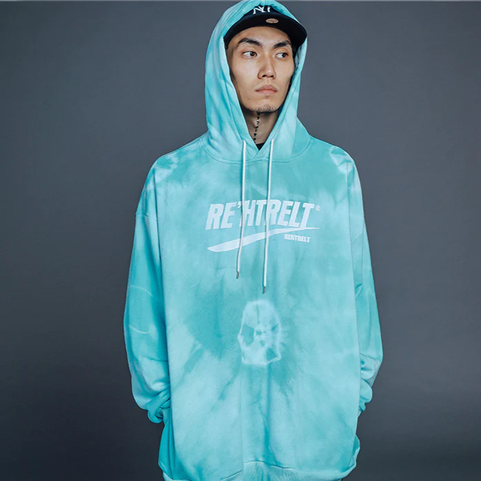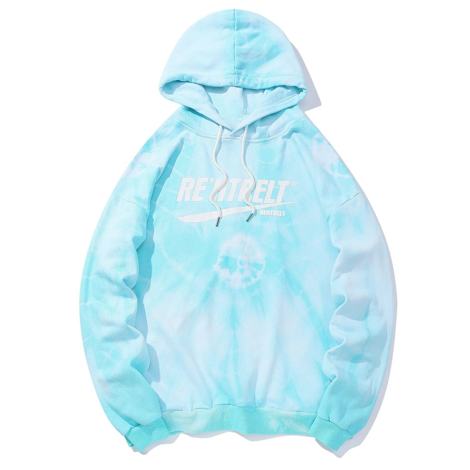 -Sweatshirt Hoodie à capuche Tie and Dye Délavé Streetwear Bleu, Turquoise, Blanc