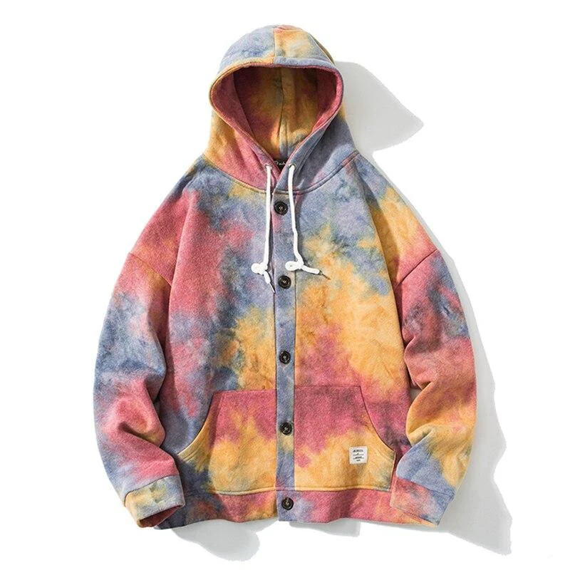 -Sweatshirt Hoodie à capuche Tie and Dye Streetwear Rouge, Jaune, Bleu