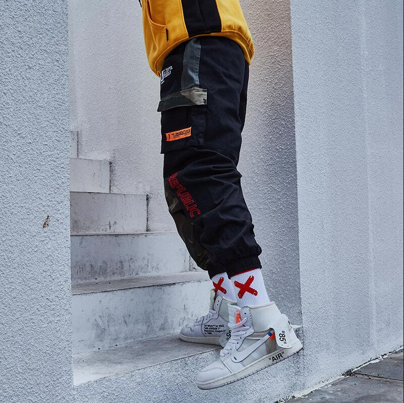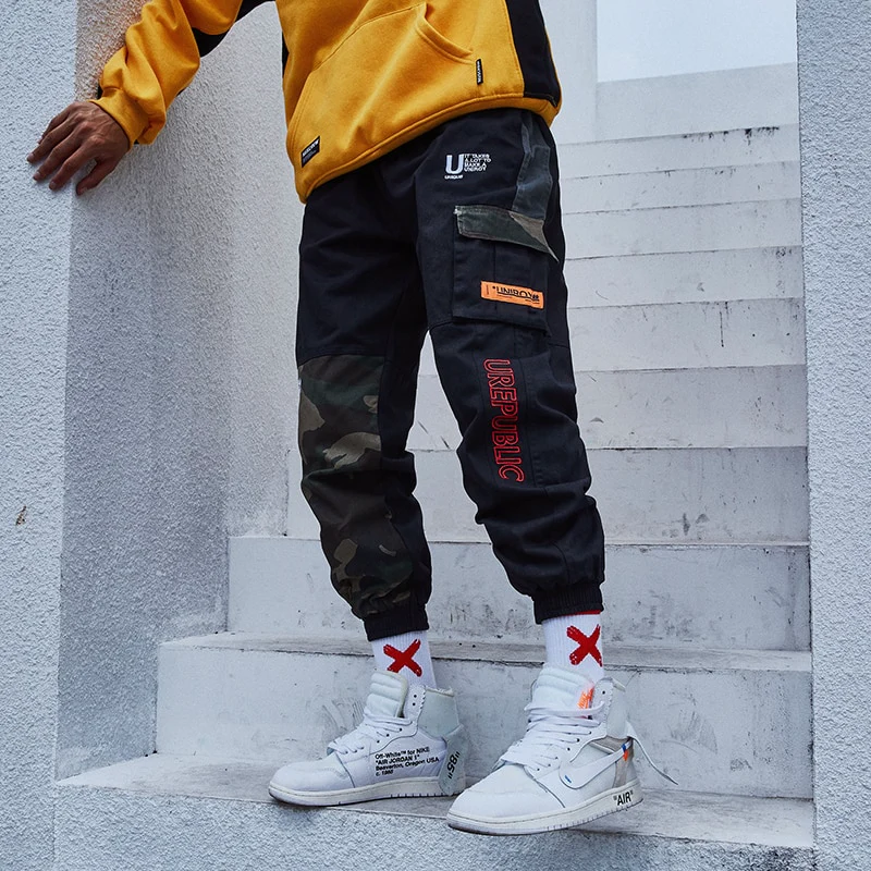 « UREPUBLIC » Pantalon Cargo Noir Treillis Militaire – URB1™