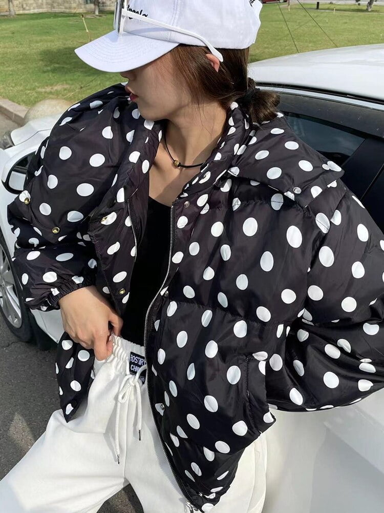 La Veste Duveté Chaud À Pois se distingue par son motif à pois, caractéristique phare de notre site de vêtements spécialisé dans les produits motifs à pois.♚ Son design intemporel et original apportera une touche de raffinement à toutes vos tenues.