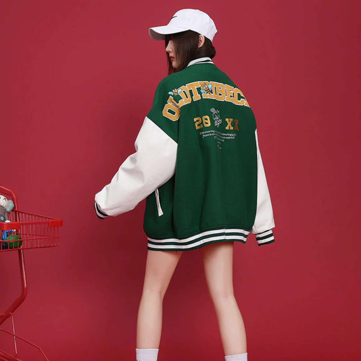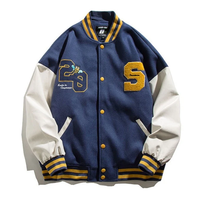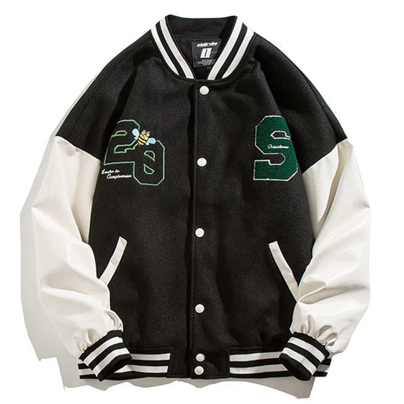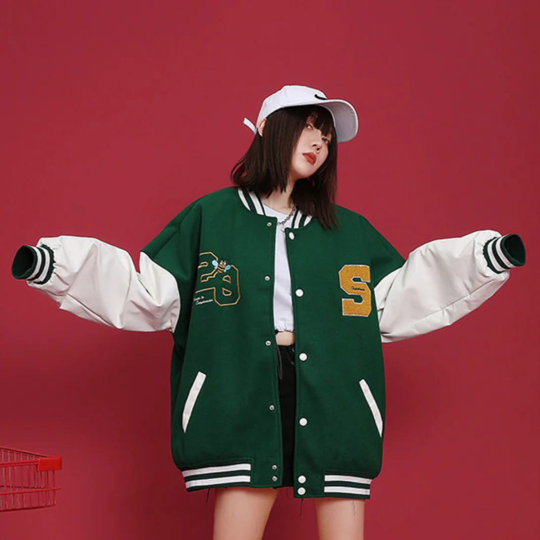 -Veste Universitaire Letterman Versity Jacket Bombers Vert Brodé Streetwear