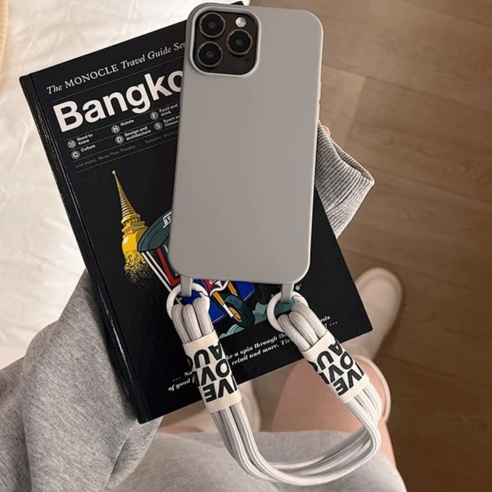 -Coque Silicone iPhone avec Cordon Bandoulière Collier 3 Fils.