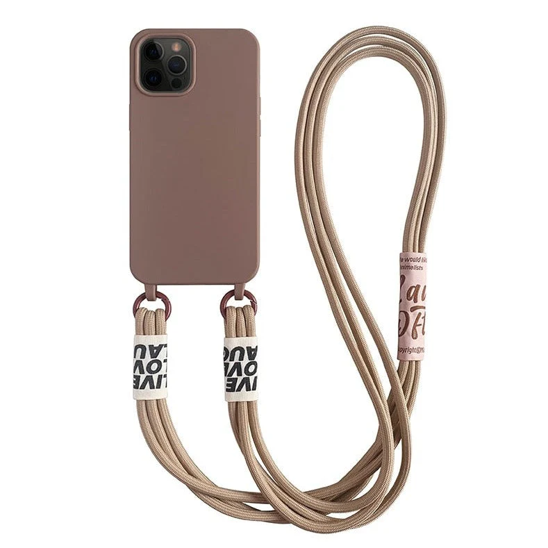 -Coque Silicone iPhone avec Cordon Bandoulière Collier 3 Fils.