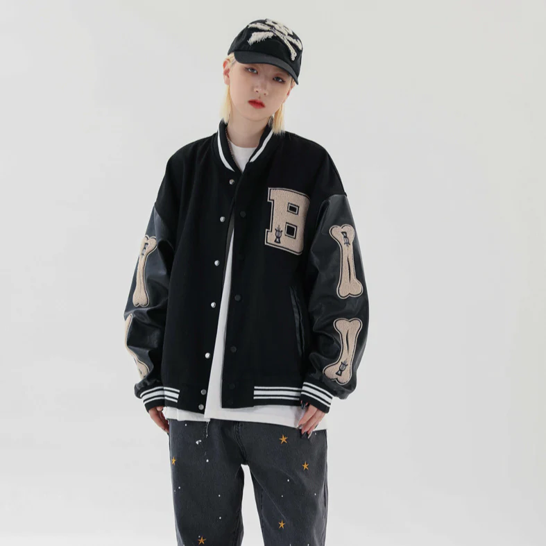 -Veste Universitaire Bombers Baseball Versity Jacket Brodée Streetwear