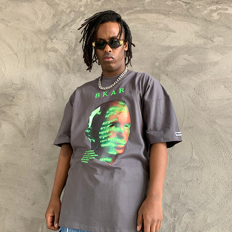 -T-shirt Gris Oversize imprimé Streetwear