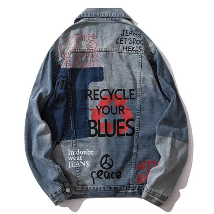-Veste en jean denim Streetwear Gris