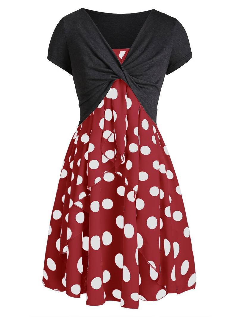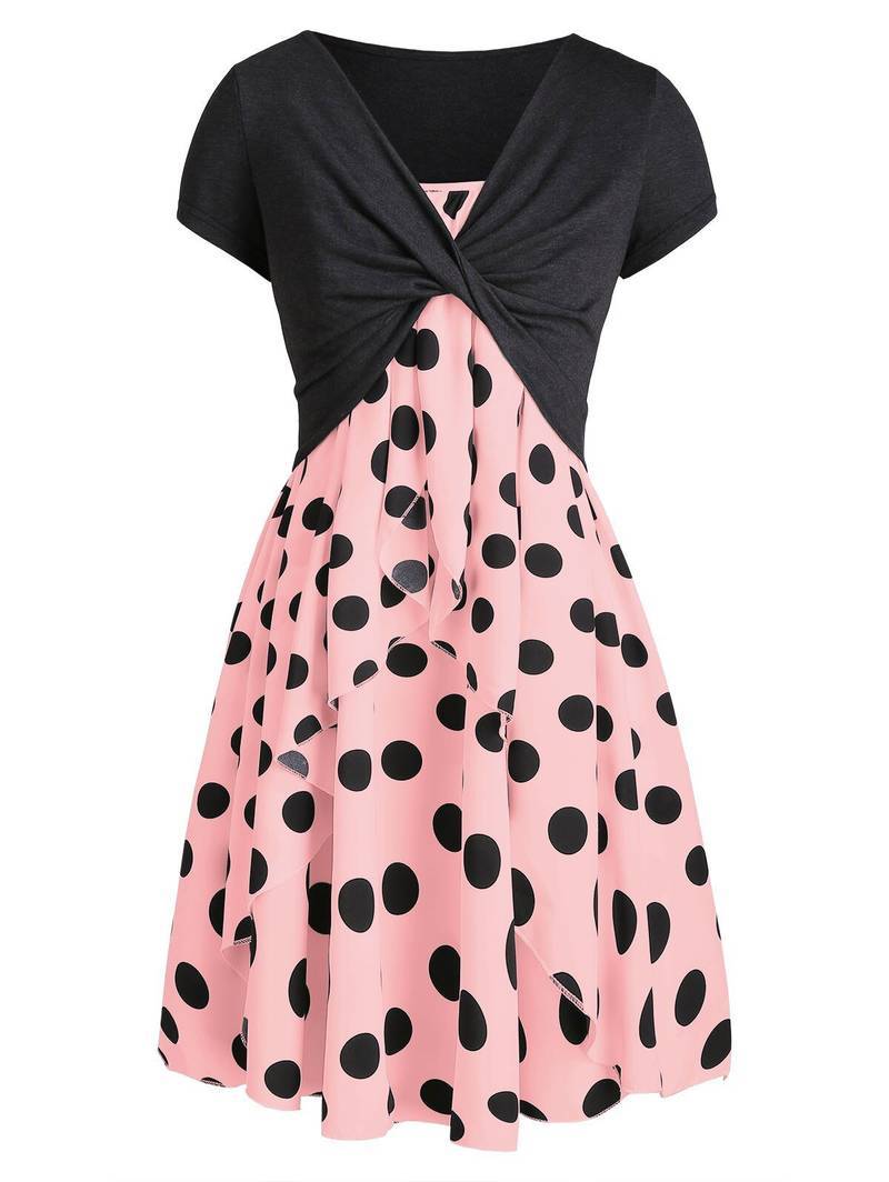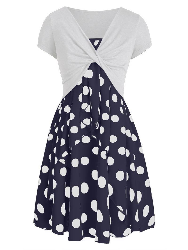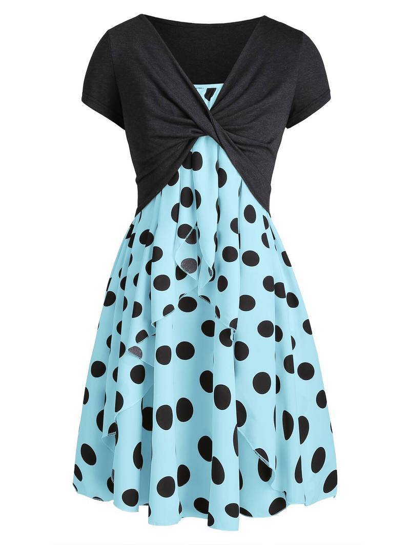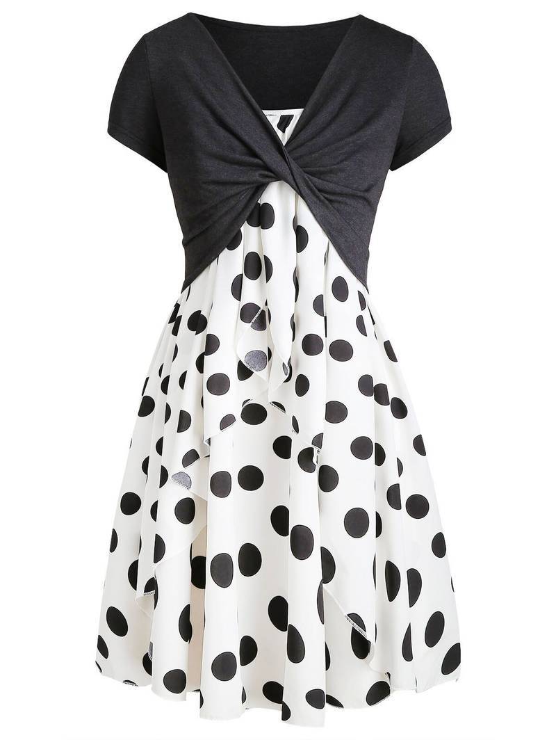 Robe A Pois Courte Combinaisons Ete Avec Mi Manches