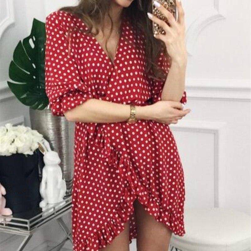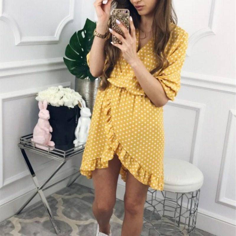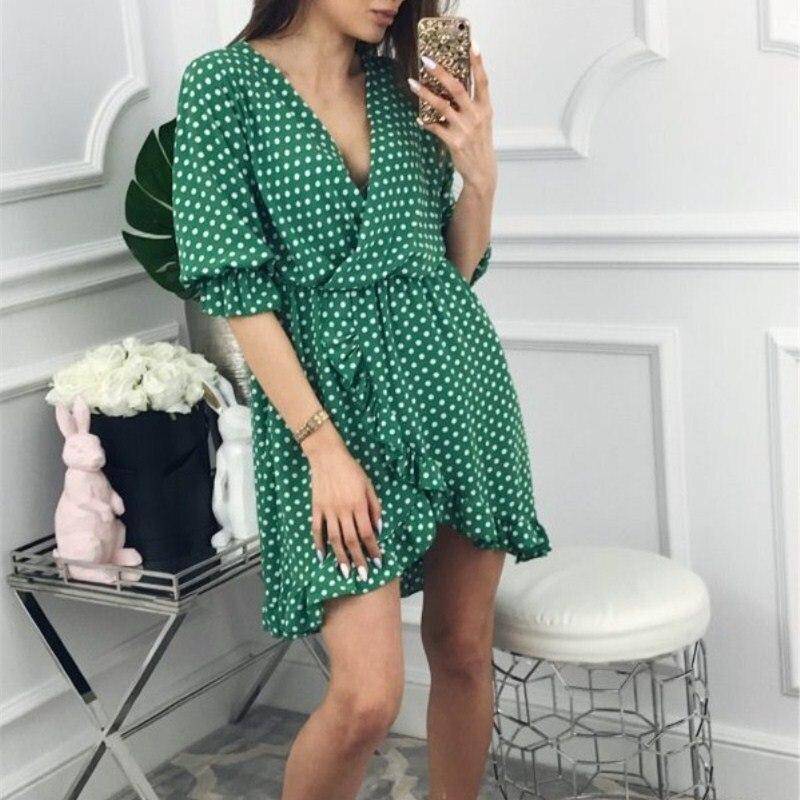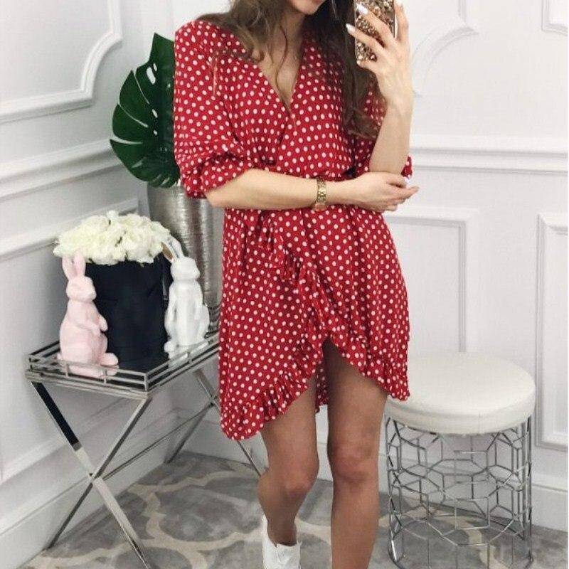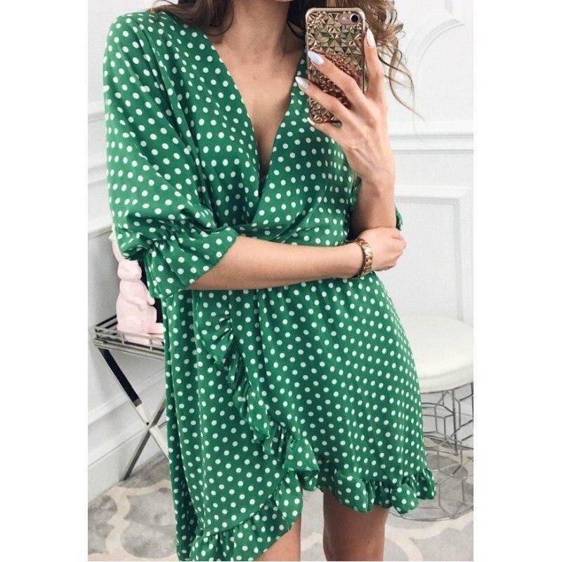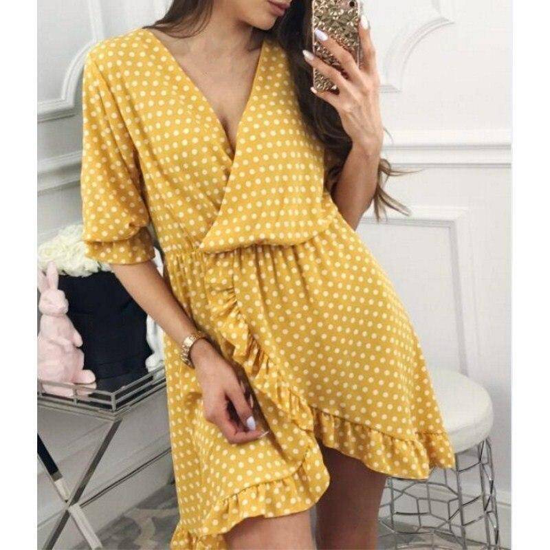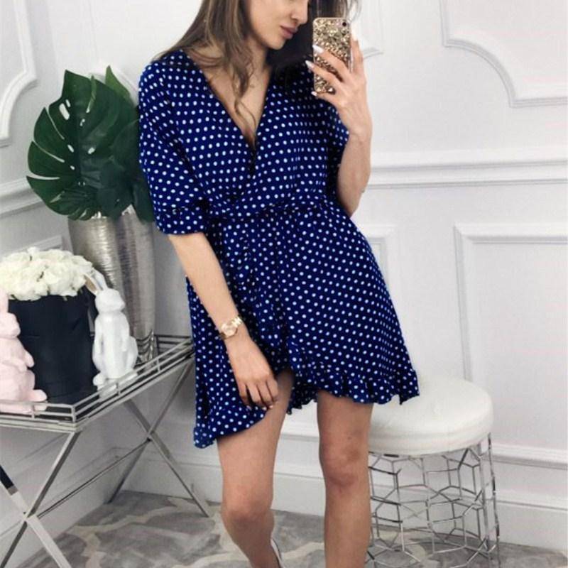- Style2 : Ladies summer polka dot ruffles mini dress