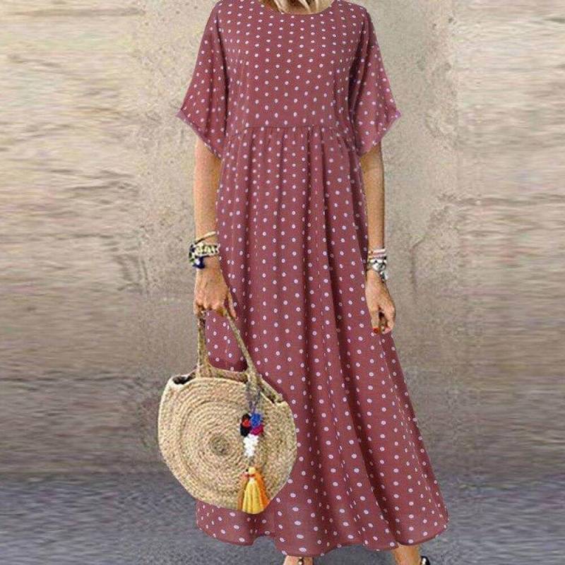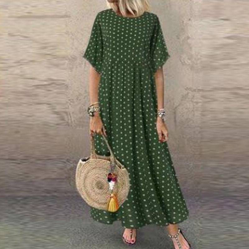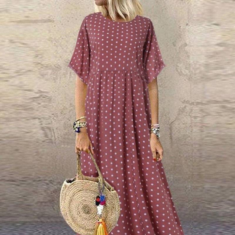 Une Robe boheme a pois de soiree longue grande taille qui s’adapte à toutes les formes