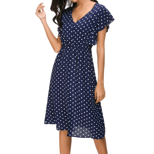 Alors qu’attendez-vous ? Faites tourner les têtes et provoquez des crises cardiaques fashion avec la Robe Col V Été À Pois Courte ! 💃🔥