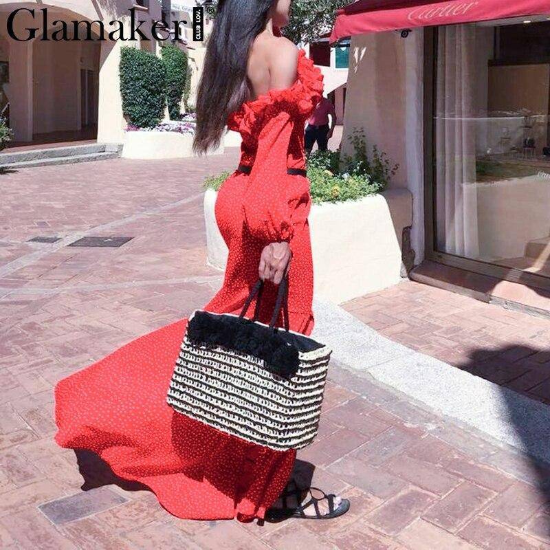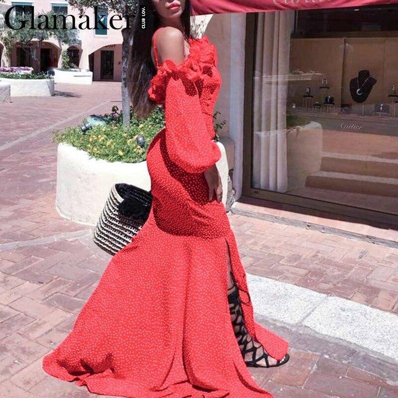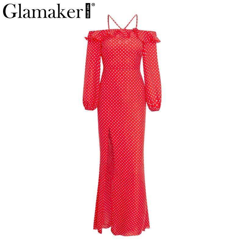 Robe Longue A Pois De Soiree Rouge