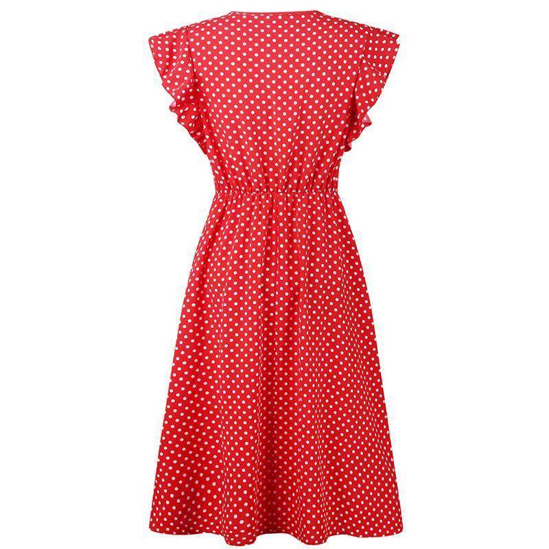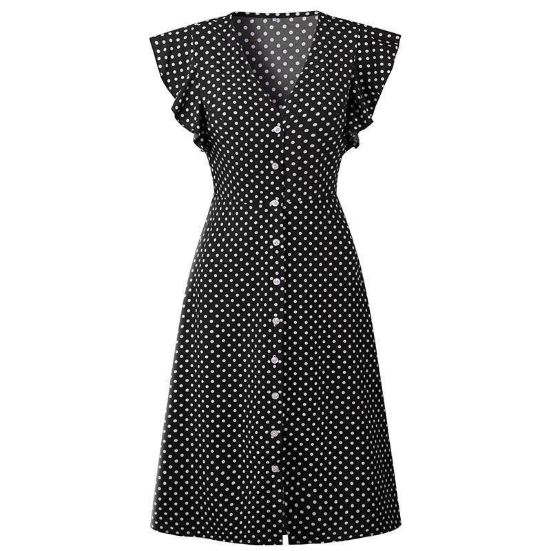 La robe à pastilles avec fente est l’un des formes de vêtements très tendance cette année. 🎀 En effet, de trop nombreux blogueuses et certaines expertes de la tendance recommandent d’en avoir une dans sa garde-robe et ceci n’est pas banal. En effet, avant d’être à pois, celle-ci est d’abord une robe, un segment inéluctable du quotidien féminin. En conséquence, le fait la Robe longue a pois manches a volants incorpore des pastilles la rend carrément plus singulière, car c’est une mode qui ne fait que réapparaître. 🎁 Si vous vous demandez pour vraiment être fashion cette période quel genre de robe tendance à pois il vous faut, alors, pariez sur notre robe de cocktail courte à pois blanc, cette dernière est la grande chanceuse.