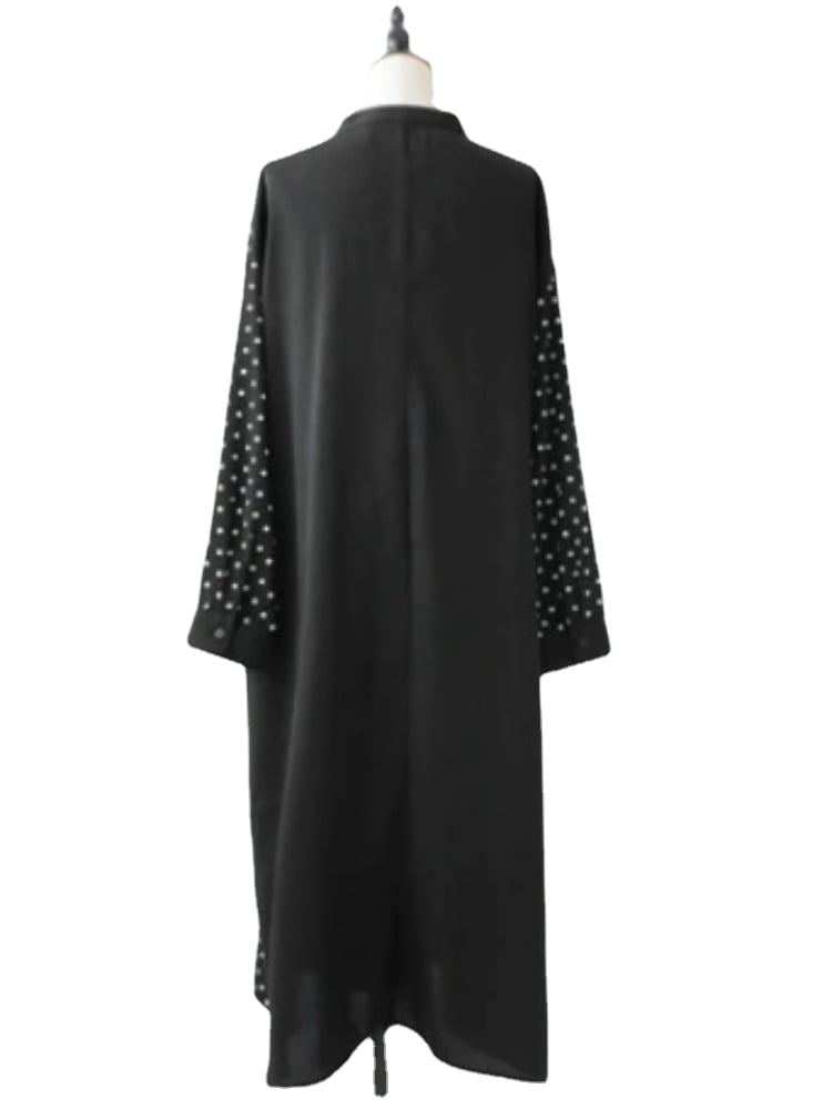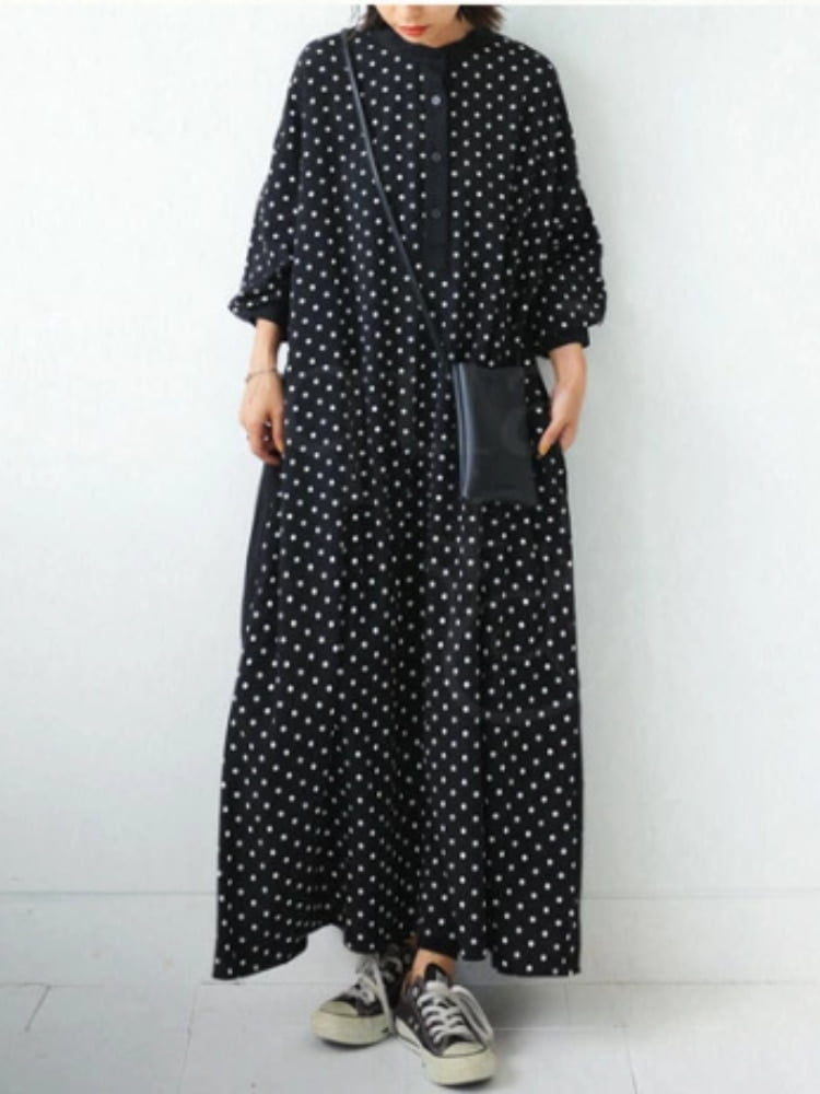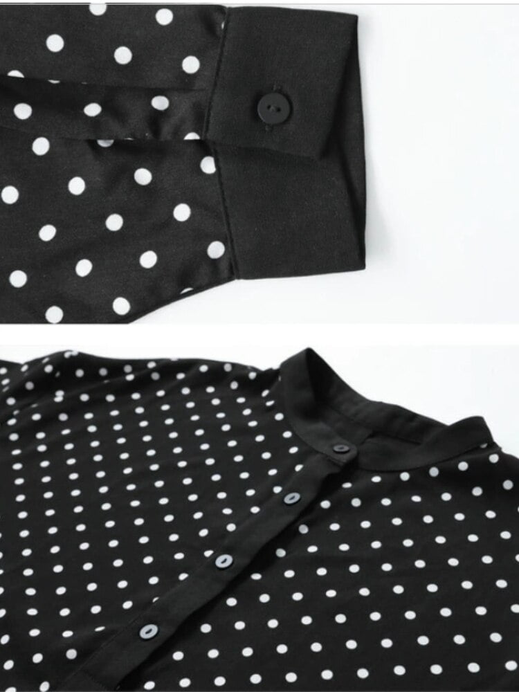 Vous cherchez une robe noire polyvalente pour la saison printemps-été 2023? Ne cherchez plus, nous avons ce qu’il vous faut! 😊 Découvrez notre robe noire à col montant et manches longues pour femmes, avec un design à pois et un ourlet large, idéale pour un look streetwear tendance.