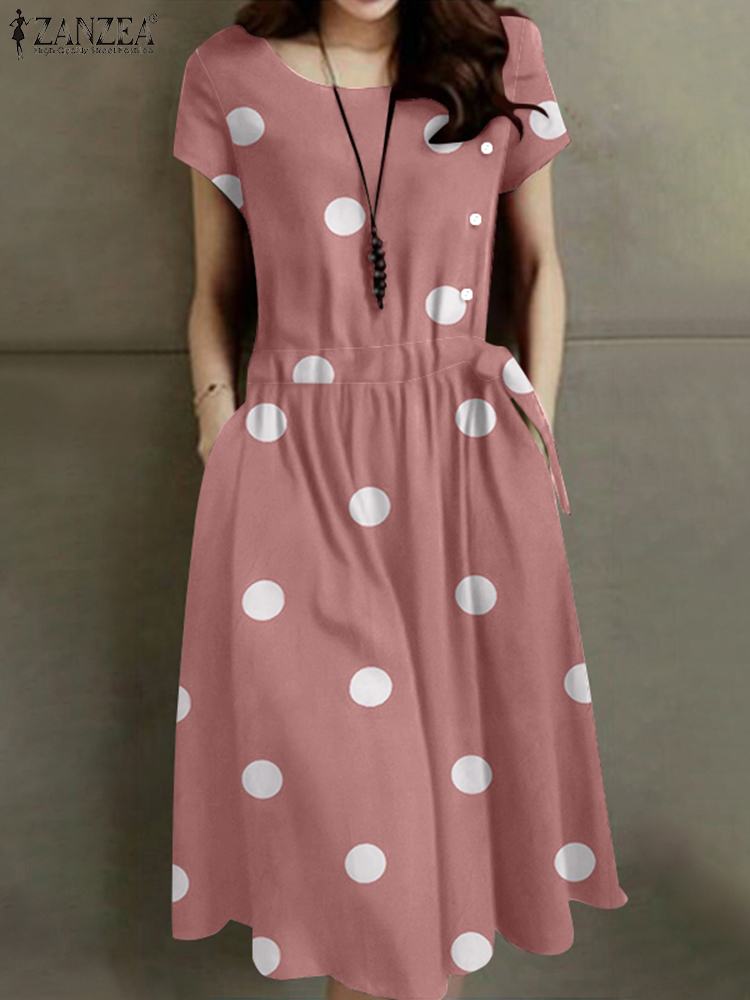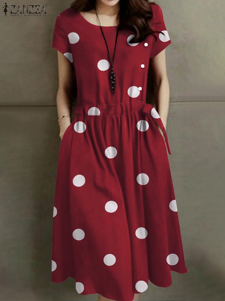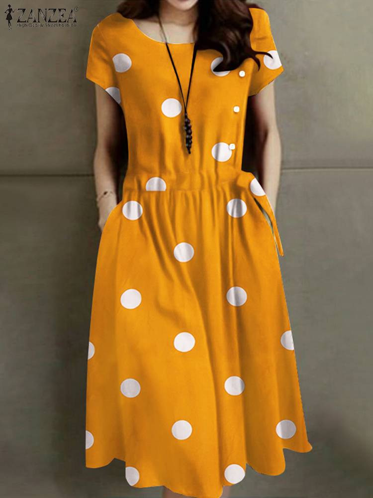Cette magnifique robe d’été vintage a été confectionnée avec soin dans un tissu doux et respirant, parfait pour les chaudes journées d’été ☀️ . Ses motifs à pois ajoutent une note rétro tandis que sa couleur vive égaye votre tenue. Avec ses manches courtes et sa longueur mi-mollet, elle offre un look féminin sans effort.